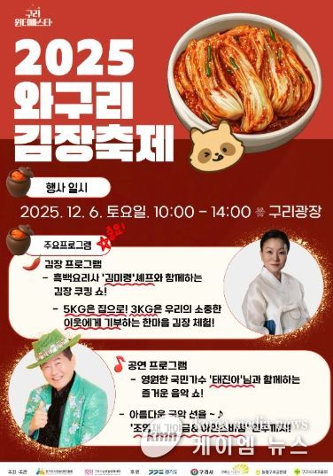 (케이엠뉴스) 구리시상권활성화재단은 오는 12월 6일 구리광장에서 ‘2025 와구리 김장축제’를 개최한다고 밝혔다.