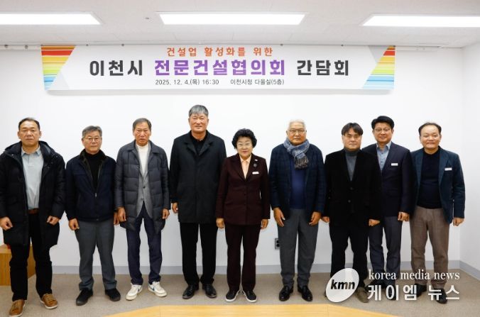 (케이엠뉴스) 이천시는 12월 4일 시청 다올실에서 전문건설협회와 간담회를 열고 지역 건설산업과 관련한 현장의 의견을 청취하는 자리를 마련했다. 이번 간담회에는 김경희 이천시장과 김종구 전문건설협회장을 비롯한 협회 임원 등 총 9명이 참석했다.