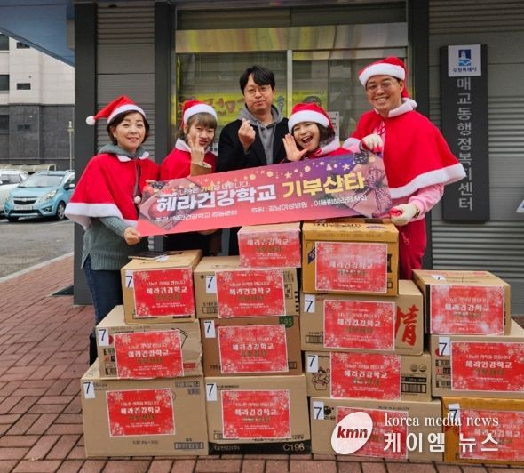 (케이엠뉴스) 지난 6일 수원 강남여성병원 어울림 헤라봉사회의 기부산타들이 수원시 팔달구 매교동에 연말을 맞이하여 선물꾸러미(라면, 과자류 등) 14상자(700,000원 상당)를 전달했다.
