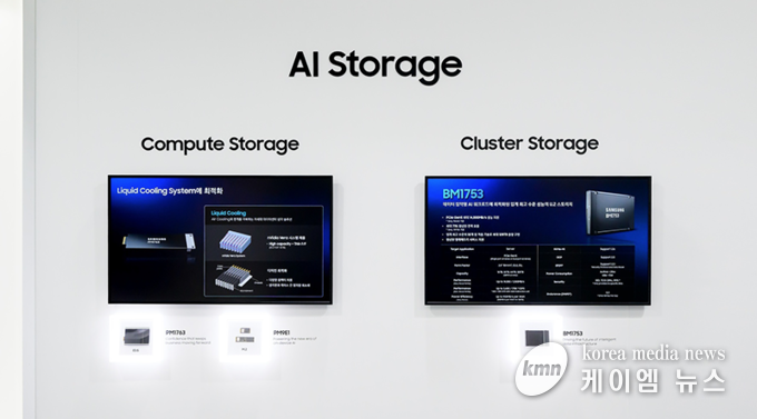 이어진 AI 스토리지 구역에서는 PCle(Peripheral Component Interconnect Express) Gen6 기반 차세대 서버용 SSD ‘PM1763’를 비롯한 주요 제품을 전시했다. 이 공간에서는 스토리지 분야에서의 성능과 기술력을 보여주며, AI 시대 인프라의 완성도를 높이는 기술 포트폴리오를 확인할 수 있었다.