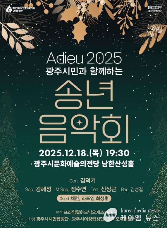 (케이엠뉴스) (재)광주시문화재단은 12월 18일 19시 30분, 광주시문화예술의전당 남한산성홀에서 '2025 광주시민과 함께하는 송년음악회'를 개최한다.