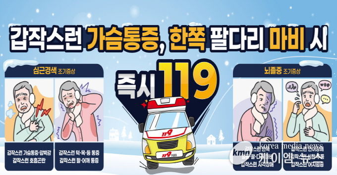 (케이엠뉴스) 예산군보건소 겨울철 큰 일교차로 심근경색과 뇌졸중 발생 위험이 높아짐에 따라 조기 증상 인지와 빠른 119 신고가 회복률을 좌우하는 가장 중요한 대응이라고 강조했다.
