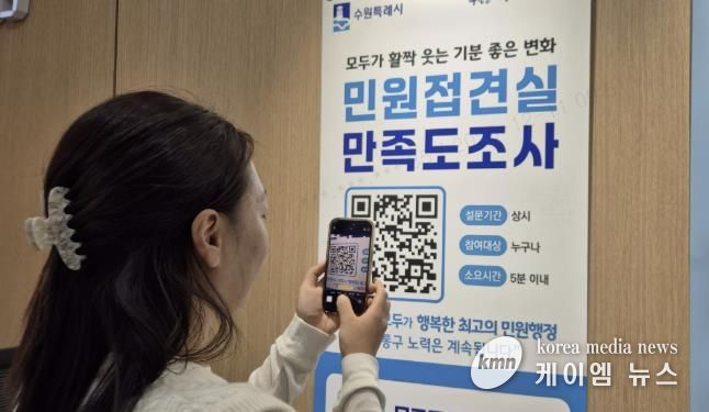(케이엠뉴스) 수원시 영통구는 민원서비스 품질을 객관적으로 점검하기 위해 누구나 참여할 수 있는 ‘민원접견실 만족도 조사’를 QR코드로 연중 진행하며 2026년 2월 28일까지 정기조사에 들어간다. 조사는 스마트폰을 통한 새빛톡톡 설문과 오프라인 QR코드·문답형 설문지를 모두 활용해 참여 접근성을 높였다.