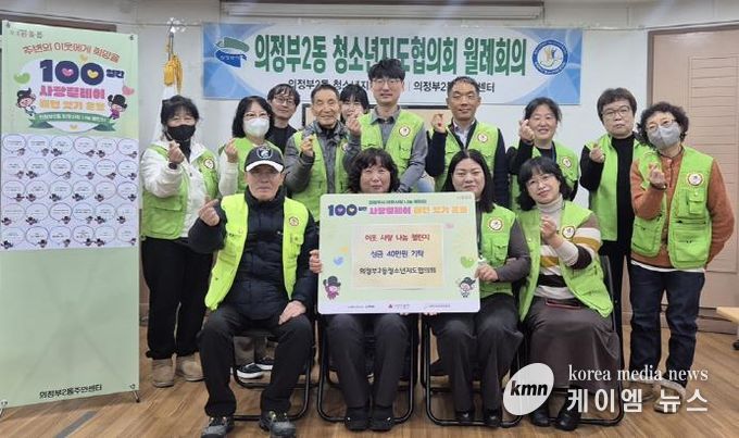 (케이엠뉴스) 의정부시 의정부2동주민센터는 12월 10일 의정부2동 청소년지도협의회가 ‘100일간 사랑릴레이 배턴 잇기’에 동참해 취약계층을 위한 성금 40만 원을 기탁했다고 밝혔다.