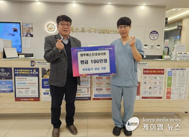 백승호 백석읍장은 “수년간 변함없이 나눔을 실천해 온 양주베스트내과의원에 깊이 감사드린다”며 “이러한 따뜻한 나눔이 지역사회 전반으로 확산되길 기대한다”고 말했다.