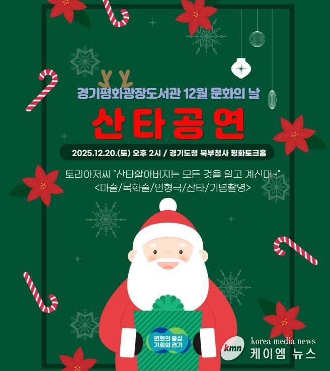 (케이엠뉴스) 경기도는 12월 19일과 20일 이틀간 도 북부청사 평화토크홀에서 ‘모두가 함께하는 겨울 감성 공연-함께 읽고, 함께 웃는 하루’를 주제로 경기평화광장도서관 12월 문화의 날 행사를 연다.