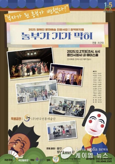 (케이엠뉴스) 용인특례시는 12월 27일 오후 3시와 6시 두 차례 시청 3층 에이스홀에서 장애인 문화예술 진흥사업의 대표 성과로 꼽히는 창작 뮤지컬 ‘놀부가 기가 막혀’를 선보인다고 17일 밝혔다.