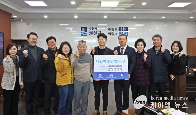(케이엠뉴스) 수원시 권선구는 12월 18일 구청장 집무실에서 한국공인중개사협회 권선구지회와‘이웃 돕기 후원금 전달식’을 가졌다.