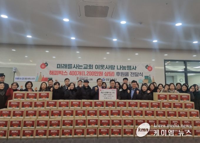 한편, 미래를 사는 교회는 매년 연말마다 취약계층을 위한 해피박스를 기탁하며, 꾸준한 나눔 실천으로 지역사회의 모범을 보이고 있다.