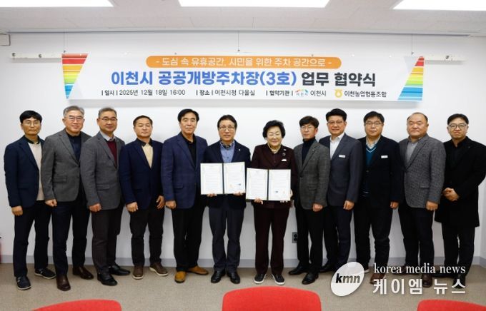 이천시는 12월 18일, 이천시장과 이천농업협동조합장이 참석한 가운데 공공개방주차장 조성 및 운영에 관한 협약식을 개최하고, 중리동 496-12번지 일원에 공공개방주차장을 조성하기로 했다.