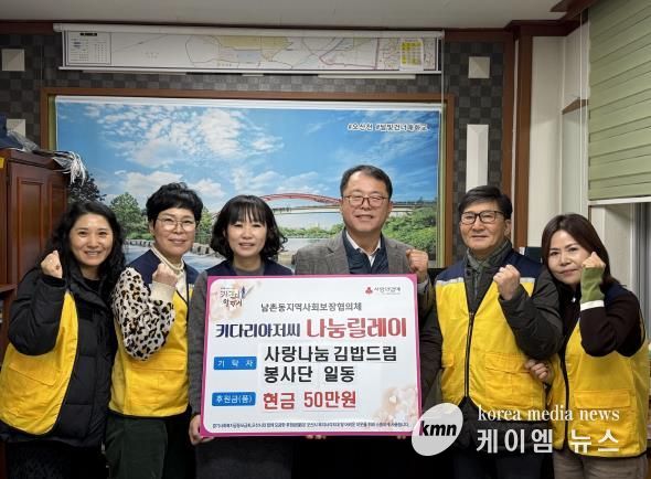 (케이엠뉴스) 오산시 남촌동 행정복지센터는 지난 18일 ‘사랑나눔 김밥드림 봉사단’이 연말을 맞아 지역 내 어려운 이웃을 돕기 위해 성금 50만 원을 기탁했다고 밝혔다.