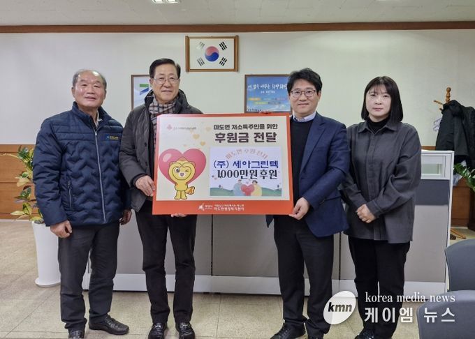 윤수현 ㈜세아그린텍 대표는 “경제적으로 어려운 시기에 지역 내 저소득층 이웃들에게 작은 보탬이 되길 바라는 마음으로 기부를 결정했다”며, “앞으로도 지역사회와 함께 성장하며 나눔을 실천하는 기업이 되겠다”고 전했다.
