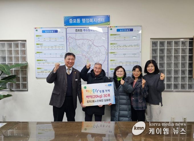 한편, 이날 기탁된 백미 30포는 증포동행정복지센터를 통해 관내 저소득층 가정에 전달될 예정이다.