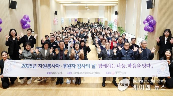(케이엠뉴스) 시흥시북부노인복지관은 한 해 동안 나눔과 봉사를 실천해 온 자원봉사자와 후원자들에게 감사를 전하고 그 의미를 함께 나누기 위해 12월 18일 ‘자원봉사자 및 후원자 감사의 날’ 행사를 개최했다.