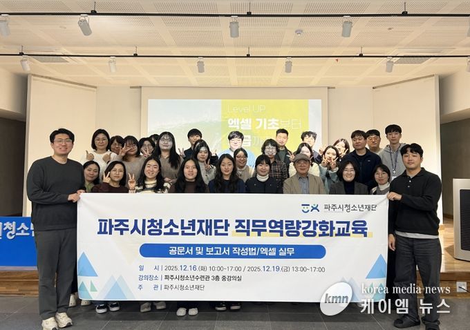 (케이엠뉴스) (재)파주시청소년재단(대표 원희복)은 12월 3일부터 12월 19일까지 재단 소속 임직원의 실무 능력 강화를 위한 직무역량강화교육 진행을 완료했다.