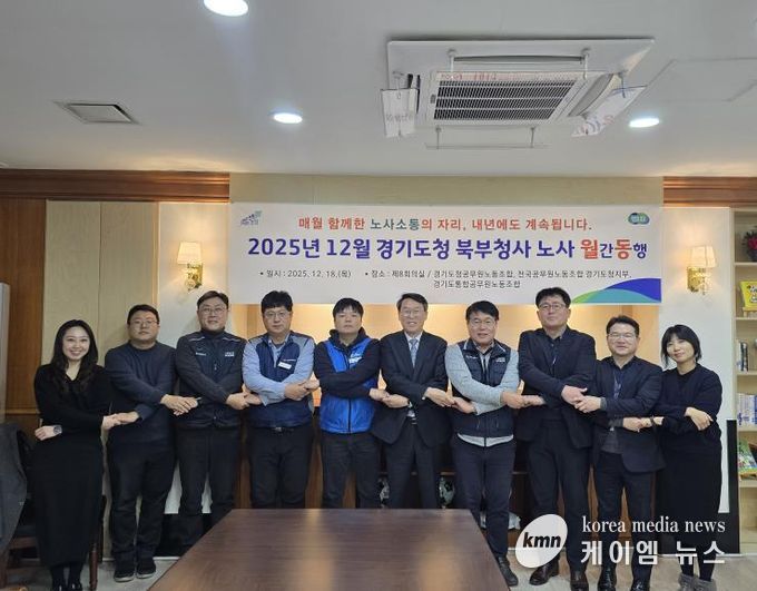 (케이엠뉴스) 경기도 북부청과 경기도청 3개 노동조합(경기도청공무원노동조합, 전국공무원노동조합 경기도청지부, 경기도통합공무원노동조합)은 ‘노사월동(노사 월간동행)’을 매월 정기적으로 운영해 오며 실질적인 조직문화 개선과 노사 간 신뢰 회복 기틀을 마련했다고 22일 밝혔다.