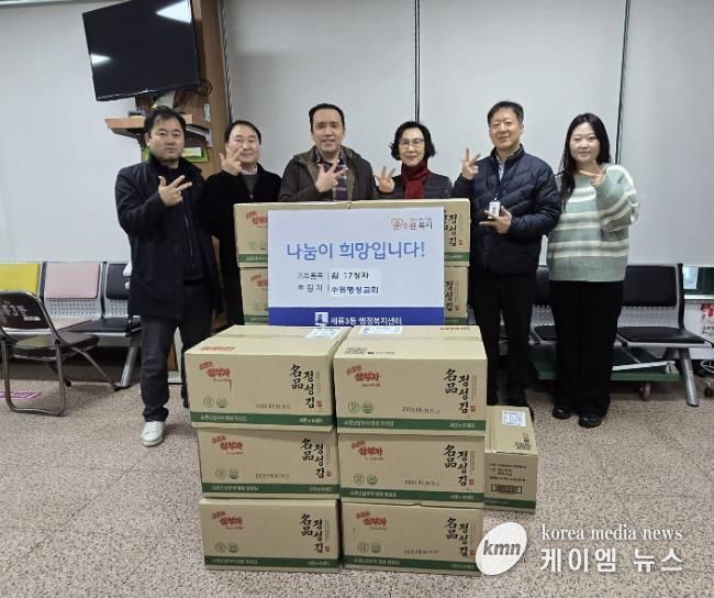 (케이엠뉴스) 수원명성교회는 지난 19일 수원시 권선구 세류3동 행정복지센터에 김 17 상자를 전달하며 취약계층을 위한 나눔을 실천했다고 밝혔다. 전달된 김은 관내 저소득 가구와 도움이 필요한 이웃들에게 배부될 예정이다.