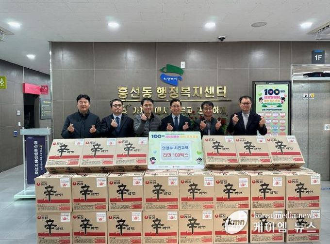 (케이엠뉴스) 의정부시 흥선동행정복지센터는 12월 18일 의정부시민교회가 ‘100일간 사랑릴레이 배턴 잇기’에 동참해 라면 100상자를 기탁했다고 밝혔다.