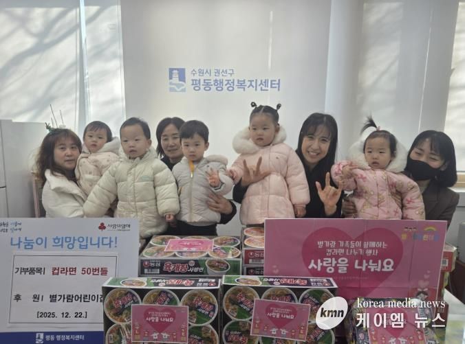 (케이엠뉴스) 지난 22일 별가람어린이집에서는 연말연시를 맞이하여 이웃 돕기 후원 물품 컵라면 50 상자를 평동 행정복지센터에 전달했다.