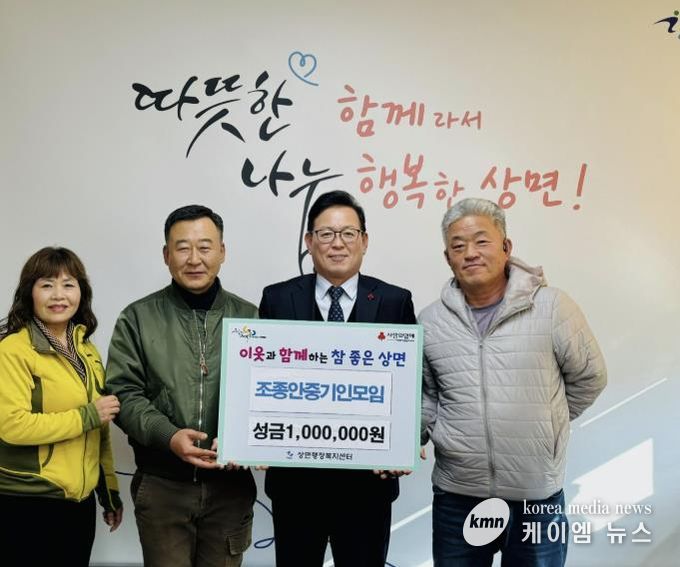 서태원 상면장은 “어려운 이웃을 먼저 생각해 성금을 기탁해 준 조종안중기인모임 여러분께 깊은 감사의 말씀을 드린다”며 “이번 성금이 우리 면의 복지사각지대 해소에 도움이 되고, 지역사회가 한층 더 따뜻해지는 계기가 되길 바란다”고 전했다.