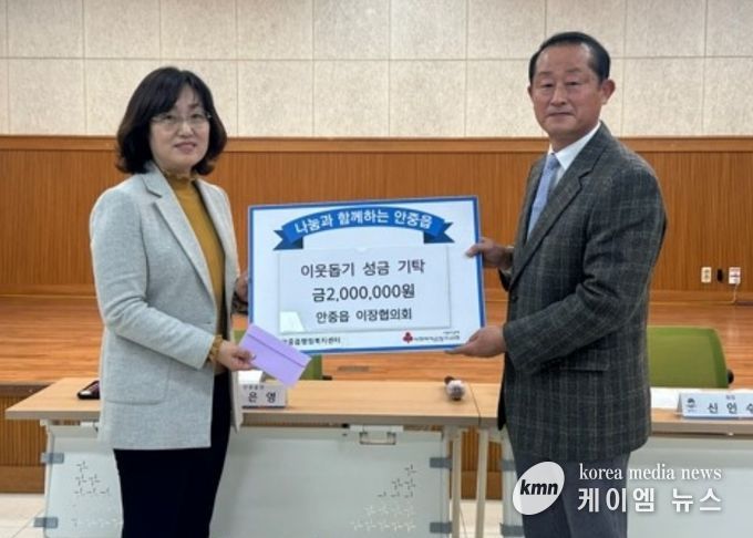 (케이엠뉴스) 평택시 안중읍 이장협의회는 지난 16일 연말을 맞아 지역 내 소외된 이웃을 돕기 위한 성금 200만 원을 안중읍 행정복지센터에 기부했다.
