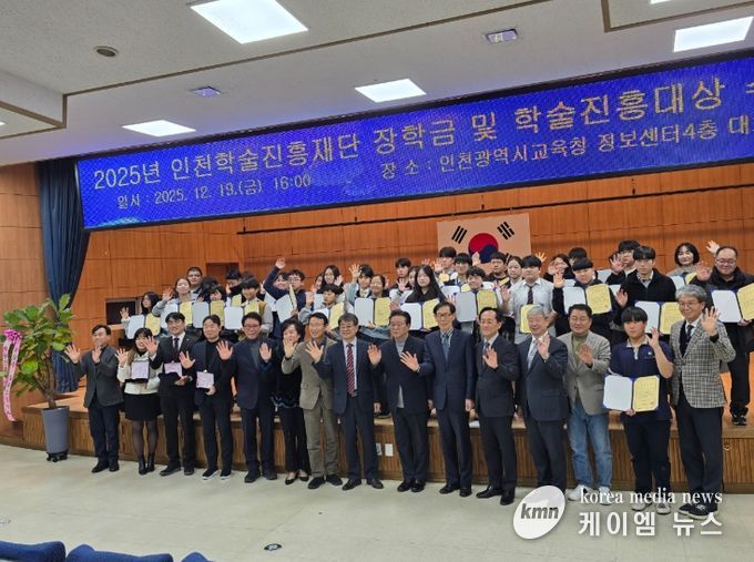 (케이엠뉴스) 인천광역시교육청은 재단법인 인천학술진흥재단과 함께 19일 ‘2025 인천학술진흥재단 장학금 수여식’을 열고, 초·중·고 학생 43명에게 장학금을 수여했다.