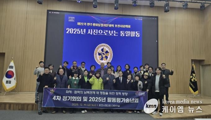 (케이엠뉴스) 민주평화통일자문회의 포천시협의회는 지난 19일 포천시청 대회의실에서 제4차 정기회의 및 2025년 활동평가보고 송년회를 개최했다.