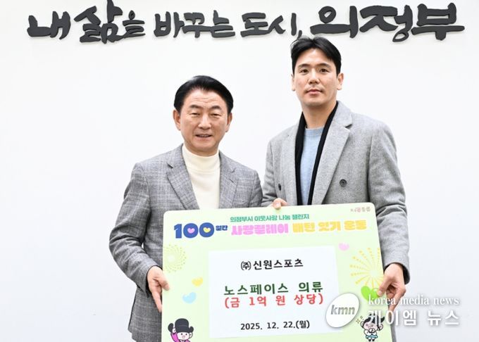 (케이엠뉴스) 의정부시는 12월 22일 ㈜신원스포츠 노스페이스 양주점(LF스퀘어몰)과 포천송우점이 관내 아동복지시설에 아동용 의류 및 가방 등 1억 원 상당의 물품을 기부했다고 밝혔다.