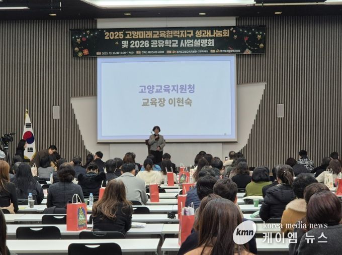 (케이엠뉴스) 경기도고양교육지원청은 2025년 12월 23일 킨텍스 제2전시장(401~403호)에서‘2025 고양미래교육협력지구 성과나눔회 및 2026 공유학교 사업설명회’를 개최했다. 이날 행사에는 고양 관내 유·초·중·고 교사, 학교관리자, 학생, 협력 마을활동가 등 총 400여 명이 참석해 고양교육의 미래를 함께 모색했다.
