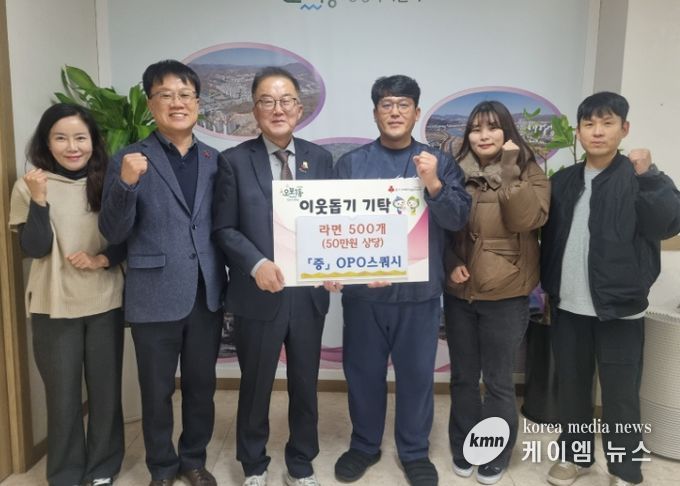 (케이엠뉴스) OPO스쿼시 강인석 대표는 23일 어려운 이웃에게 전달해 달라며 광주시 오포1동에 라면 500개(50만 원 상당)를 기탁했다.