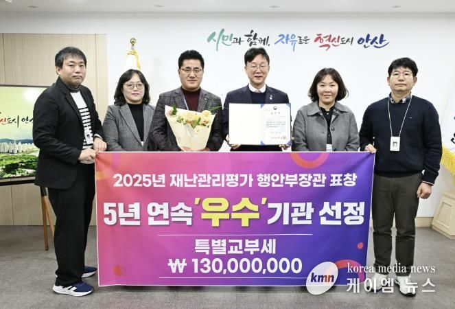 (케이엠뉴스) 안산시는 행정안전부가 주관한 2025년도 재난관리평가에서 재난관리 단계별 대응 역량을 인정받아 최고 등급인 ‘우수기관’으로 5년 연속 선정됐다고 24일 밝혔다.