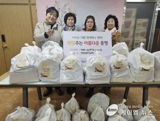 (케이엠뉴스) 지난 23일, 매원감리교회는 크리스마스를 맞아 행복나눔주머니 62개를 매탄2동 행정복지센터에 전달했다.