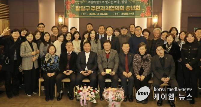 (케이엠뉴스) 수원시 팔달구 주민자치협의회는 지난 12월 23일 관내 식당에서 각 동 주민자치회장, 사무국장 등 40여 명이 참석한 가운데 2025년 송년회를 개최했다.