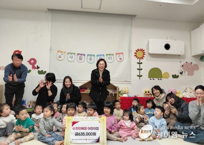 이번 성금은 ‘수자인에덴 어린이집’ 원생들과 학부모들이 자발적으로 참여해 마련한 것으로, 아이들과 함께 나눔의 의미를 실천하고자 하는 뜻이 담겼다.