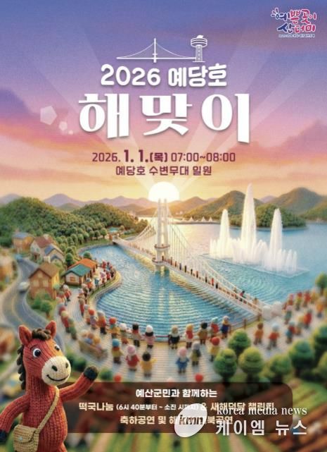 (케이엠뉴스) 예산문화원은 2026년 병오년 ‘붉은 말의 해’를 맞아 오는 1월 1일 오전 7시부터 예당호 수변무대 일원에서 ‘2026 예당호 해맞이 행사’를 개최한다.