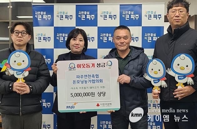 (케이엠뉴스) 파주시는 23일 파주연천축협 돈모닝농가협의회로부터 관내 저소득 취약계층을 위한 돼지고기 200kg(500만 원 상당)를 기탁 받았다고 밝혔다.