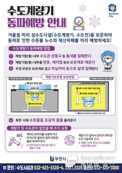 김상수 부천시 재난안전과장은 “올겨울 들어 가장 강한 한파가 예보된 만큼, 취약계층 보호와 수도관 동파 예방 등 시민 생활과 직결된 분야에 대응 역량을 집중하고 있다”며 “시민 여러분도 한파 행동 요령과 동파 예방 수칙을 꼭 실천해 주시길 바란다”고 말했다.