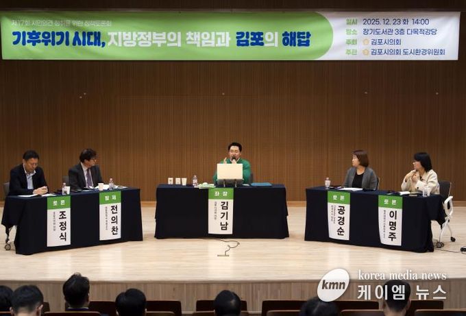 (케이엠뉴스) 김포시의회 도시환경위원회는 12월 23일 장기도서관에서 ‘기후위기 시대, 지방정부의 책임과 김포의 해답’을 주제로 제17회 정책토론회를 열었다.