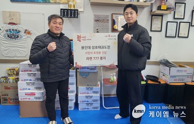 (케이엠뉴스) 시흥시 월곶동은 지난 12월 26일, 용인대성호태권도학원으로부터 연말연시를 맞아 라면 777개를 기부받았다고 밝혔다.