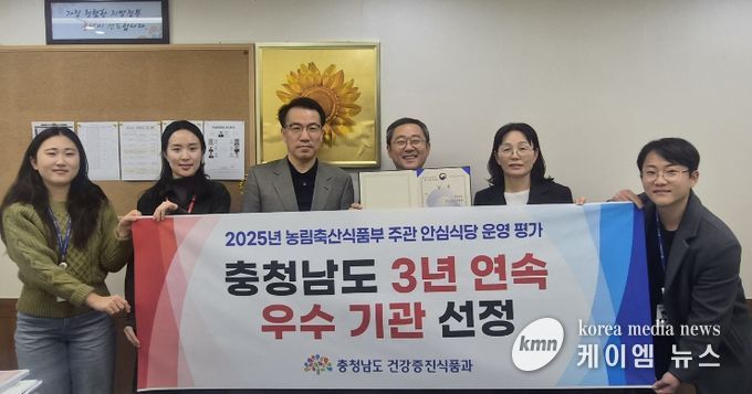 (케이엠뉴스) 충남도는 농림축산식품부 주관 ‘2025 안심식당 운영 지자체 평가’에서 3년 연속 우수기관으로 선정돼 장관상을 수상했다고 29일 밝혔다.