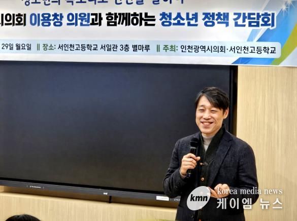 (케이엠뉴스) 인천광역시의회 이용창 교육위원장(국·서구2)은 29일 서인천고등학교를 찾아 1·2학년을 대상으로 ‘청소년과 함께하는 정책 소통 간담회’를 가지며 지역 청소년들의 생생한 목소리를 들은 후 시정에 반영하고자 했다.