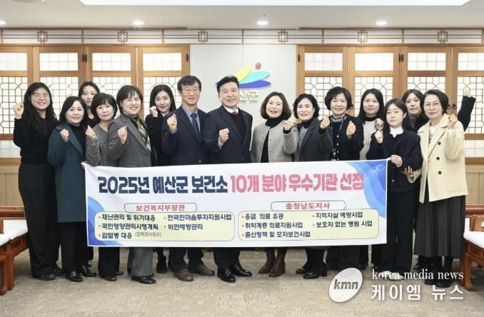 (케이엠뉴스) 예산군은 예산군보건소가 2025년 보건 분야 중앙부처와 충청남도 주관 각종 평가에서 10개 분야 우수기관으로 선정되며, 군 단위 지자체 가운데 유일하게 전국 최고 수준의 보건행정 역량을 공식적으로 인정받았다고 밝혔다.