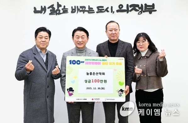 (케이엠뉴스) 의정부시는 12월 30일 늘좋은산악회가 ‘100일간 사랑릴레이 배턴 잇기’에 동참해 관내 저소득층을 위한 성금 100만 원을 기부했다고 밝혔다.