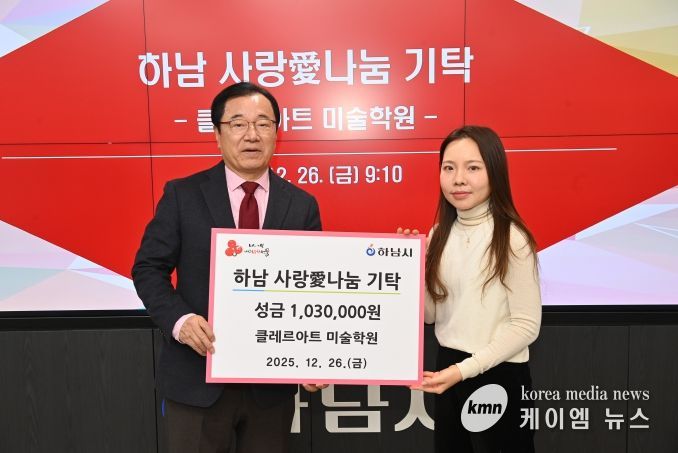 (케이엠뉴스) 하남시는 지난 26일, 미사3동에 위치한 클레르아트 미술학원(원장 김수빈)이 작품 전시회 수익금(103만원)을 ‘하남 사랑愛나눔’ 성금으로 기탁하며, 나눔을 실천했다고 밝혔다.
