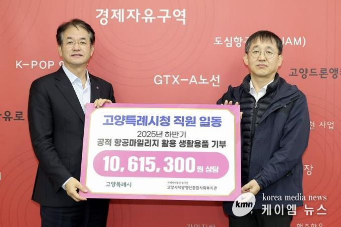(케이엠뉴스) 고양특례시는 연말을 맞아 지난 30일 이동환 고양시장과 김진우 고양시덕양행신종합사회복지관장이 참석한 가운데 열린시장실에서 ‘2025년 하반기 공적 항공마일리지 활용 기부물품 전달식’을 가졌다고 밝혔다.