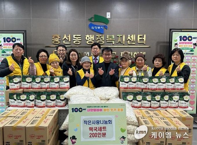 (케이엠뉴스) 의정부시 흥선동행정복지센터는 12월 29일 작은사랑나눔회가 ‘100일간 사랑릴레이 배턴 잇기’에 동참해 떡국세트 200인분을 기탁했다고 밝혔다.