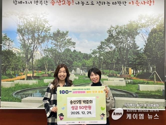 (케이엠뉴스) 의정부시 송산2동주민센터는 12월 29일 송산2동 지역사회보장협의체 박준희 부위원장이 어려운 이웃을 돕기 위해 성금 50만 원을 기탁했다고 밝혔다.