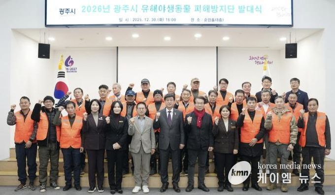 (케이엠뉴스) 광주시는 지난 30일 시청 순암홀에서 ‘2026년도 광주시 유해야생동물 피해방지단’ 발대식을 개최했다.