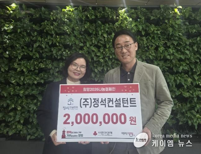 정연태 ㈜정석컨설턴트 대표는 “도시계획 분야에 종사하는 기업으로서 현장에서 접하는 지역의 생활 여건과 어려움에 관심을 가져왔다”며 “추운 겨울을 앞두고 도움이 필요한 이웃들에게 조금이나마 온기가 전해지기를 바라는 마음으로 기탁을 결정했다”고 말했다.