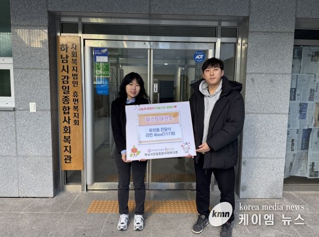 (케이엠뉴스) 감일퍼스트태권도장(관장 이양성)은 지난 12월 26일 하남시감일종합사회복지관(사회복지법인 휴먼복지회 운영)에 ‘사랑의 라면트리’ 라면 117개를 전달했다.